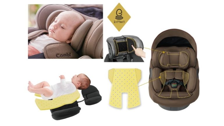 さらに、本体頭部だけではなく、背中から足元にかけても、卵を落としても割れないほどの超・衝撃吸収素材「エッグショック」を搭載し、ドライブ中の揺れや衝撃から赤ちゃんの全身を守る。