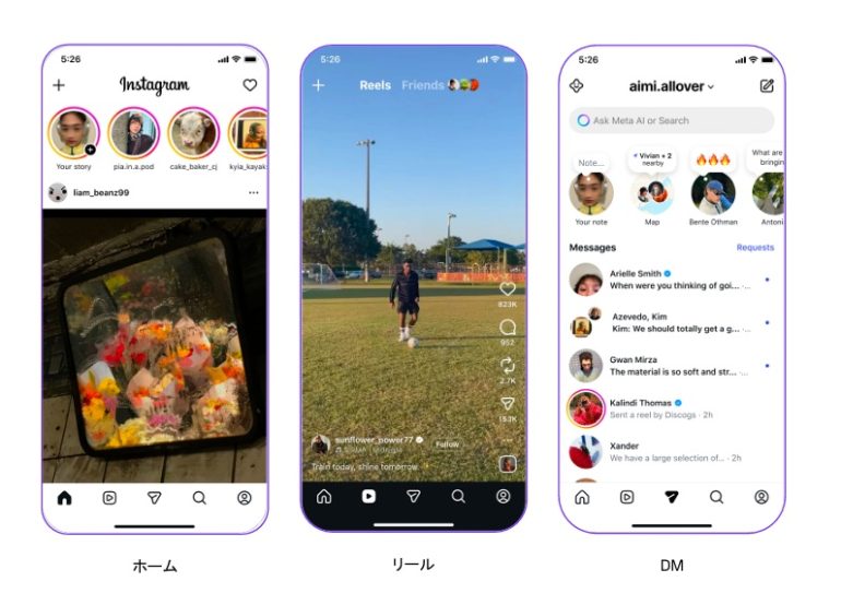 さらにiPad専用のアプリでは、開くと最初にリールを表示したり、モバイルアプリではリールとDMにアクセスしやすいデザインの変更を検討していると言う。モバイルアプリのデザイン変更に関しては、「数週間のうちにテストをスタートする予定で、その後正式導入します」と使いやすさを追求している。