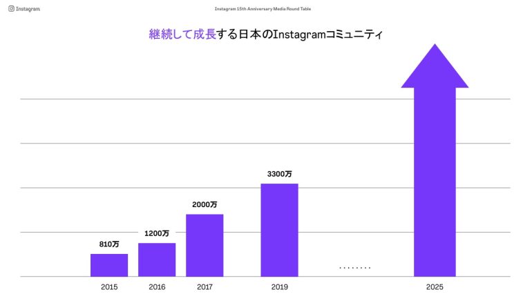 機能を付加させながら進化してきたInstagramの月間アクティブユーザーは世界で現在30億を突破。現在の世界のネットの人口が約55億なので、半数以上が利用していることになる。日本の利用者数も継続して伸び続けている。