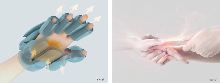 また、指先からしっかりマッサージする「指コース」、手のひらを中心にもみほぐす「全体コース」、広範囲に血行を促進する「手首コース」の3種類のもみコースを搭載し、気分や好みに合わせたケアが可能。さらに、温熱ヒーター付で、心地よい温かさとともにマッサージを楽しむこともできる。