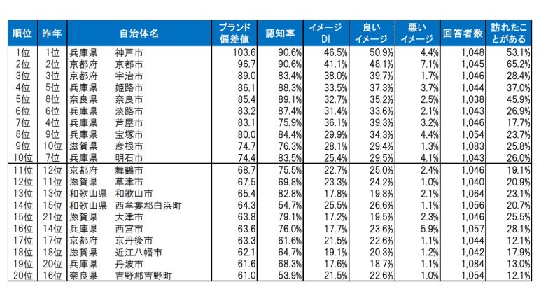 出典/「いい部屋ネット 自治体ブランドランキング2025<関西版>」