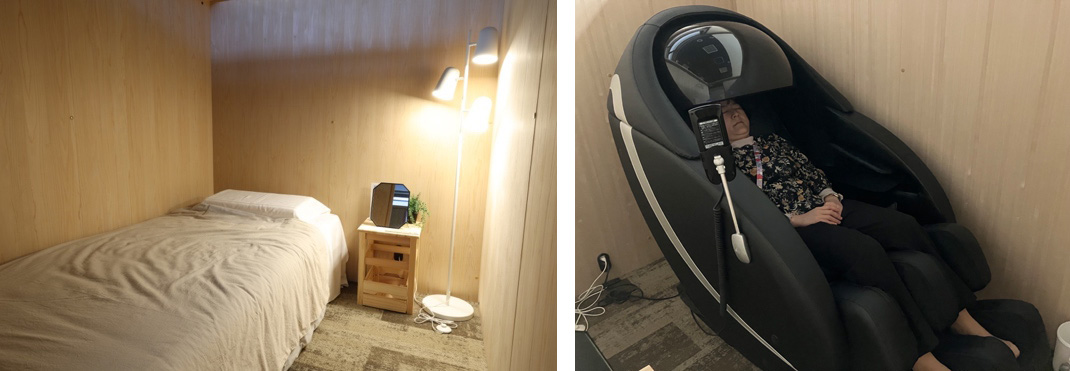 三輪さん:仕事をしていてちょっと疲れたなとか、気分を切り替えたいなっていう時にコーヒーを飲んだりタバコを吸いに行ったり、コンビニに行ったりしますよね? そういう感覚でフラッと来ていただくことを想定しました。また、疲労回復や集中力を向上させると言われているパワーナップも15分程度が理想と言われています。