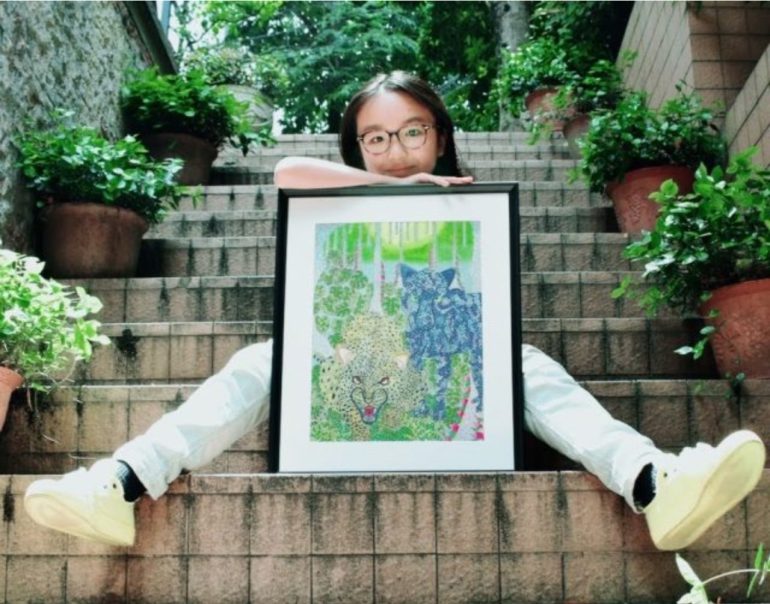 10歳で開いた初めての個展では、ほとんどの作品があっという間に成約。その後も国内外で展示を重ね、テレビ番組やWebメディア、雑誌などでもたびたび取り上げられるなど、多方面から注目を集めている。なかでも絶滅危惧種の動物たちを題材にした作品には、社会的なメッセージも込められており、国内外で高い評価を受けるなど、14歳ながら「天才」と評される画家だ。