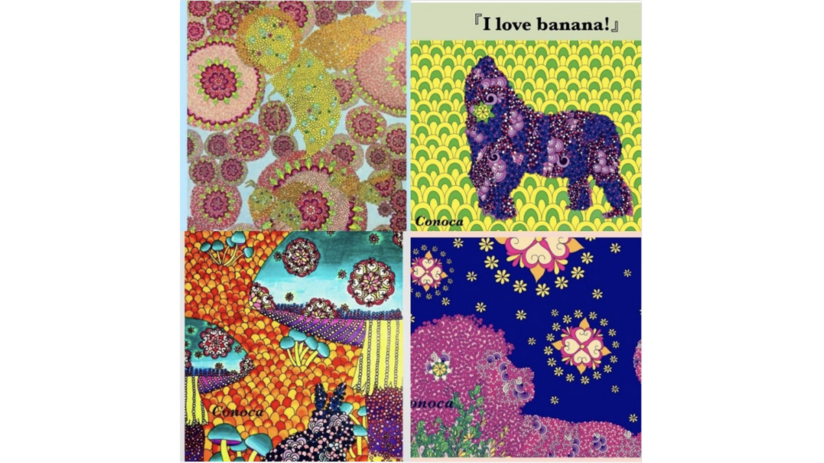 『つぶつぶアートぬりえ』を手がけたのは、2011年に東京で生まれた画家・Conoca(コノカ)さん。ベースとなっているのは、Conocaさんの独自技法「つぶつぶアート」だ。
