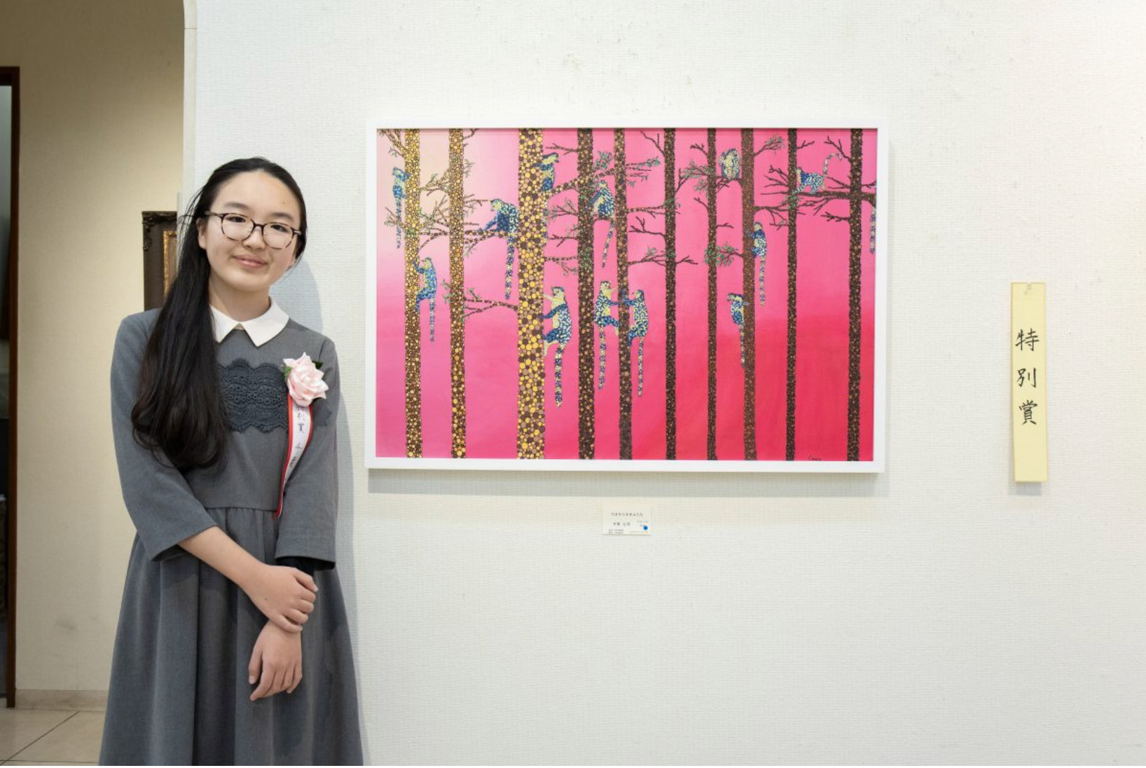 10歳で開いた初めての個展では、ほとんどの作品があっという間に成約。その後も国内外で展示を重ね、テレビ番組やWebメディア、雑誌などでもたびたび取り上げられるなど、多方面から注目を集めている。なかでも絶滅危惧種の動物たちを題材にした作品には、社会的なメッセージも込められており、国内外で高い評価を受けるなど、14歳ながら「天才」と評される画家だ。