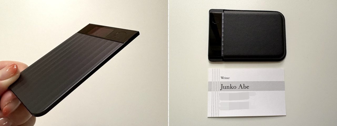 「Plaud Note Pro」は縦85.6mm、横54.1mm、厚さ2.99mmとクレジットカードと同じサイズの超薄型で重さも30gと超軽量。持ち運びには申し分のないサイズ。