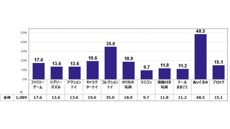 キダルト層が最も購入したのは「ぬいぐるみ」
