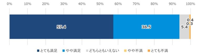 購入した玩具の満足度について調査したところ、「とても満足(57.4%)」と「やや満足(36.5%)」を合わせた満足層は「93.9%」に達した。