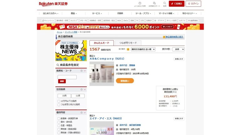 例えば、「株主優待目的」の銘柄では、自分が欲しい株主優待がもらえる銘柄を探して、その銘柄を購入するといった具合です。