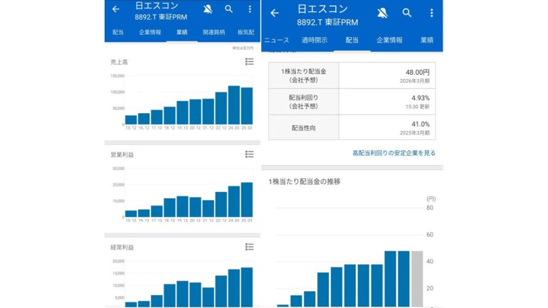 前回のインタビューで、保有株として紹介した日本エスコン(8892)です。配当金も順調に増えているのがわかります。