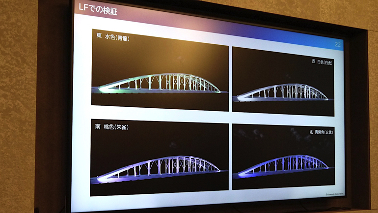 そして、JR東日本千葉支社の隅田川橋梁への提案にもライトニングフローは活用され、通常演出や正時演出などのシミュレーションが行われました。