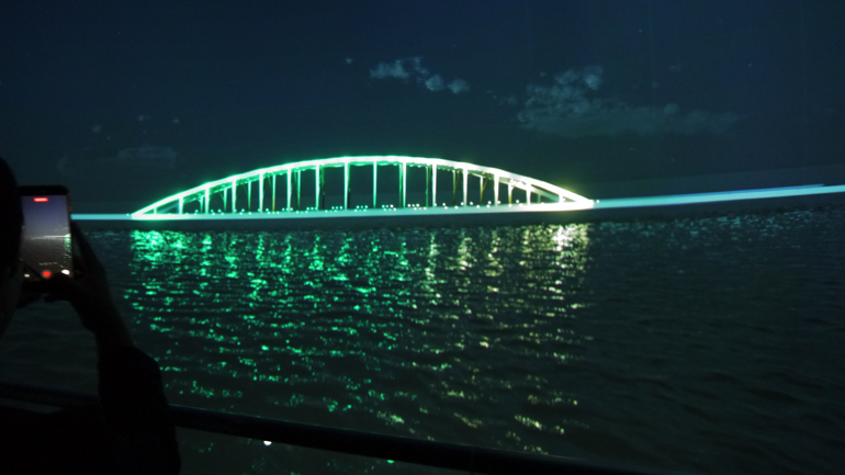 さらに、隅田川橋梁のLEDライトアップ化にあたり、「汐留サイバードーム」によるデモが行われました。