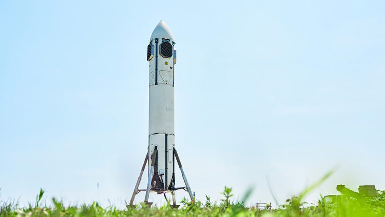 2025年6月に北海道大樹町で離着陸実験を行った、実際の実験機を展示。カーボンニュートラル社会を目指すホンダが取り組むのは、ロケット機体の再使用技術だけでなく再生可能燃料を使った「サステナブルロケット」の実現。ホンダの挑戦は、地球を超え、宇宙へと広がっている。