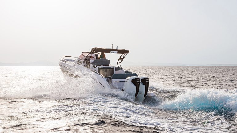 高出力・低燃費を両立し、さまざまなデザインの舟艇にもマッチしやすいシンプルかつクリーンなスタイリングを採用したホンダ船外機のフラッグシップモデル。