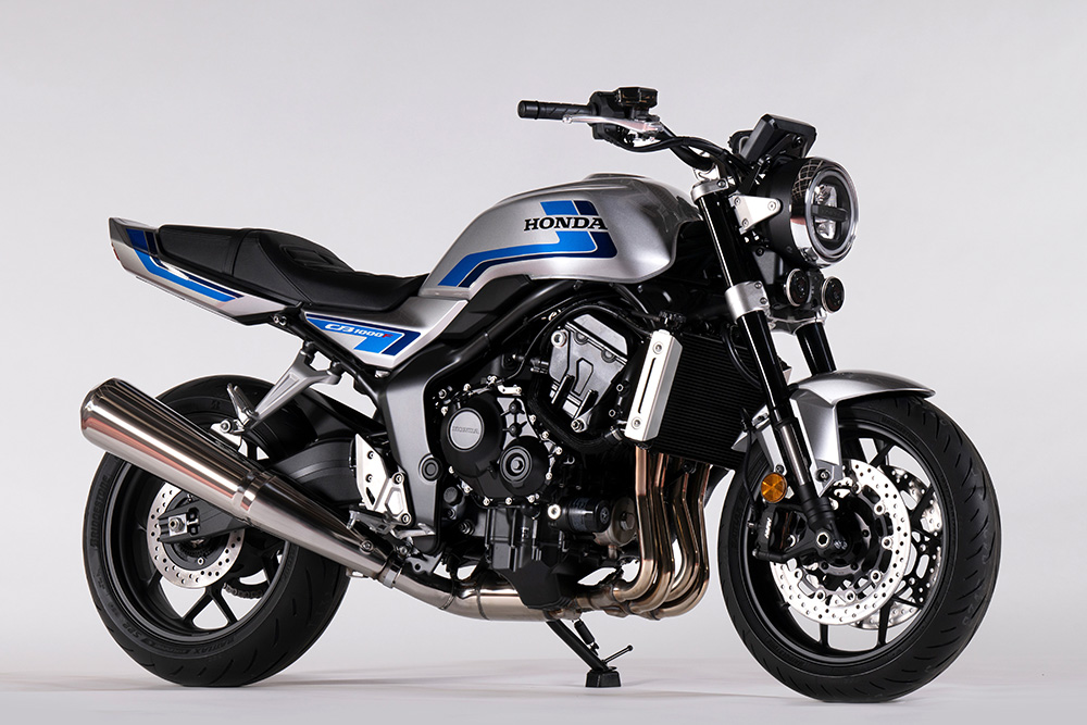 ホンダのロードスポーツバイクを代表するプロダクトブランド「CB」として「進化するスポーツバイクの基準」を具現化した新型のCB1000Fと、ヘッドライトカウルを追加するなど外観の充実を図り、CB1000Fのトラディショナルなプロポーションをさらに引き立てたCB1000F SEを展示。(画像は展示予定モデルとは異なる)