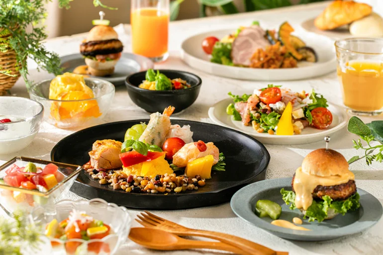 ホテル内のレストラン「THE COMPASS」では、「世界の食を旅するレストラン」をテーマに掲げた多国籍ビュッフェが楽しめます。開放感のある空間で、世界各国の料理をゆったりと味わえるのが魅力です。