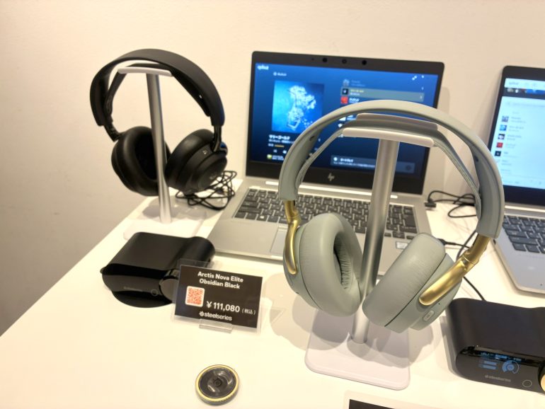 ところが、そんな考えは『Arctis Nova Elite』を見てから一気に吹き飛んだ。この体験会の案内が来た当初は新製品の詳細は伏せられていて、前日にやっと商品名を含めた具体的な情報が公開されたという経緯だったのだ。その上で、実際に製品を目の当たりにして、ある種の安堵感が全身に浸透した。「これは記事にするべき製品だな」と。