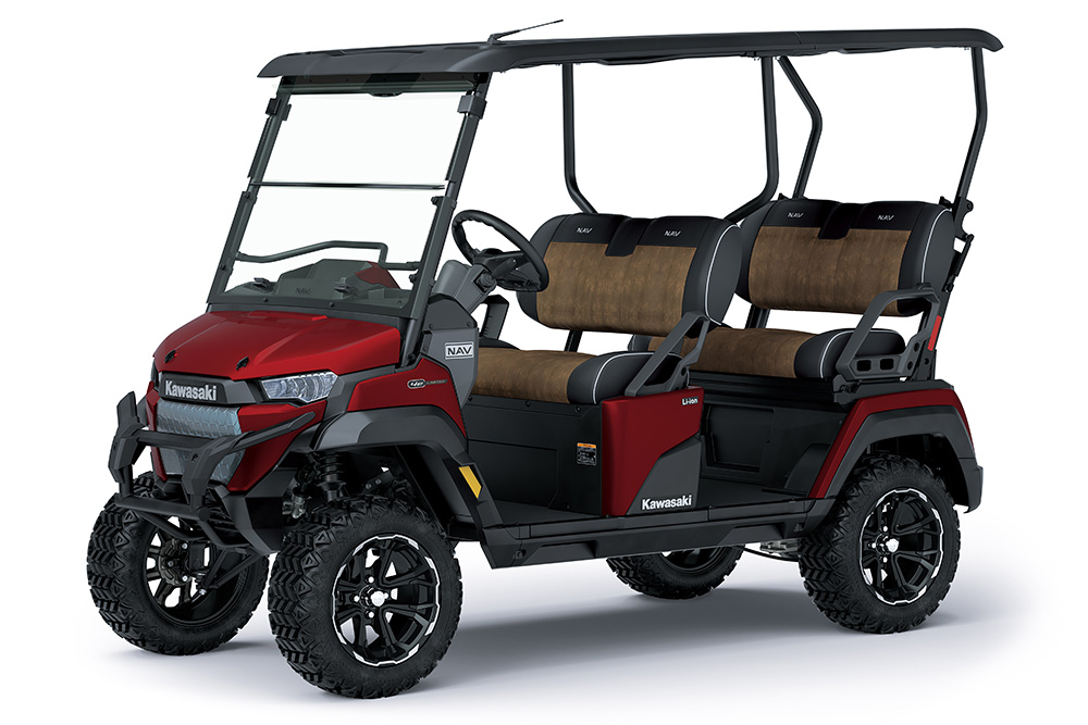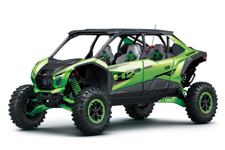 カワサキ初のスーパーチャージドエンジンを搭載したオフロード四輪車「TERYX5 H2 DELUXE」および、カワサキ初の電動四輪「NAV 4e LIMITED」を、日本初公開。