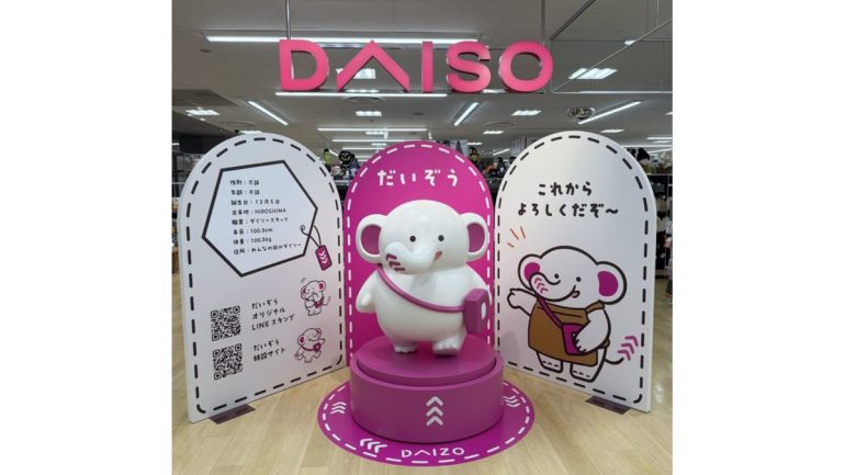 ダイソーのブランドカラーであるピンクをまとったゾウのキャラクターが今年9月に誕生した。これは、ダイソーを手がける大創産業の初めての公式キャラクターだ。