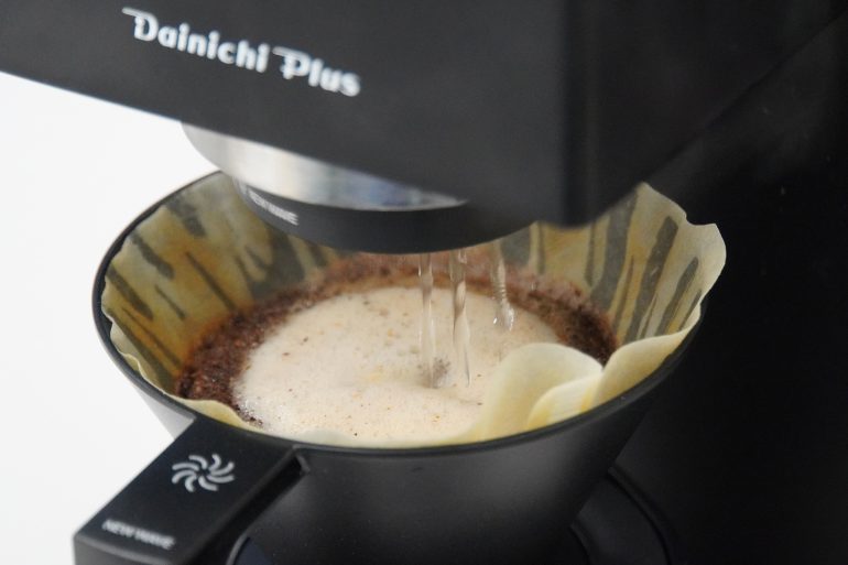また、ハンドドリップでは抽出時のお湯の動きによって粉を撹拌するが、円形のシャワーから一斉にお湯を落とすだけではお湯の勢いが足りず十分な撹拌効果も得られないのだという。