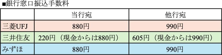一方、自分がメインバンクとする銀行が振込先ではない、他行宛の振込手数料は有料となる。