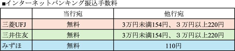 何か用事等で振込みするとなると、この3行のどれかになっていることが多いため、この3行のどれかをメインバンクとして、インターネットバンキング契約をしていると便利である。
