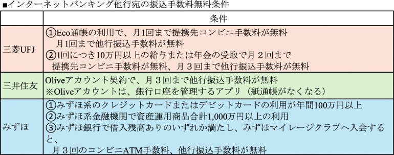 その振込手数料を無料とするためには、各銀行の条件を満たすことで無料とすることができる。