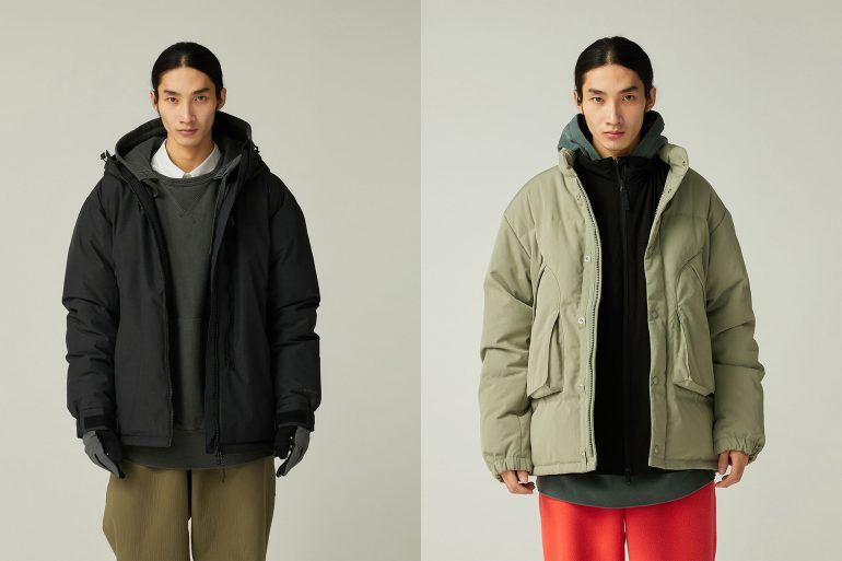 真冬のハードな環境下にも対応するダウンジャケット、ダウンコート。中に厚手のニットやミドラーを着ても余裕のあるシルエットで動きやすさも考慮した。コートの丈は膝下まであるため、ベンチコートのような使い方も可能。