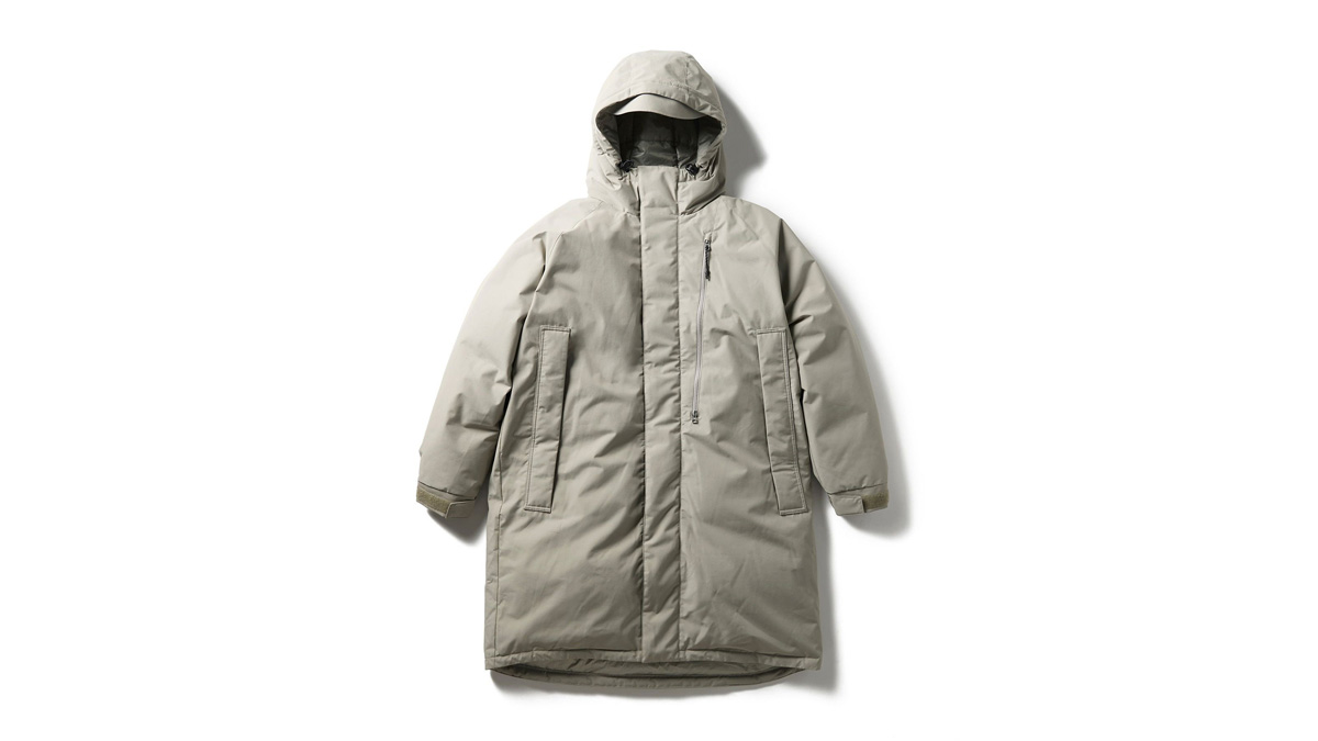 極寒のフィールドにも対応する800フィルパワーのダウンにも撥水加工を施すことで優れた保温性を濡れた場合でも維持。縫い目を表に出さない設計で縫い目からの浸水も軽減する。ジャケットとコートの2アイテムでブラック、グレージュ、ネイビーの3色を展開。
