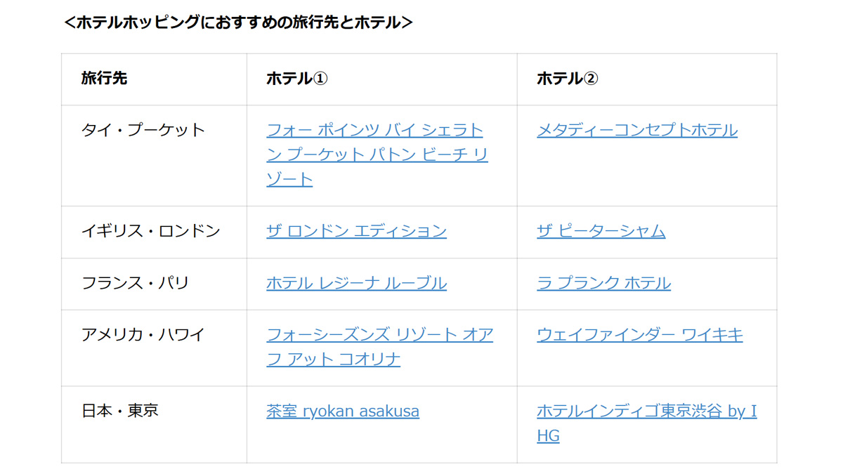 ひとつの旅行先で複数のホテルに宿泊する「ホテルホッピング」