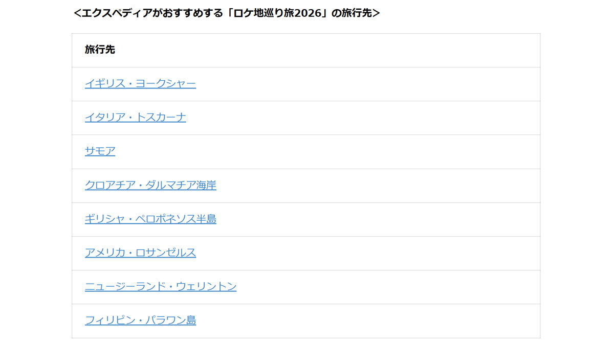 3年連続で注目のトレンドに!テレビ番組や映画の影響で旅行先を選ぶ「ロケ地巡り旅2026」