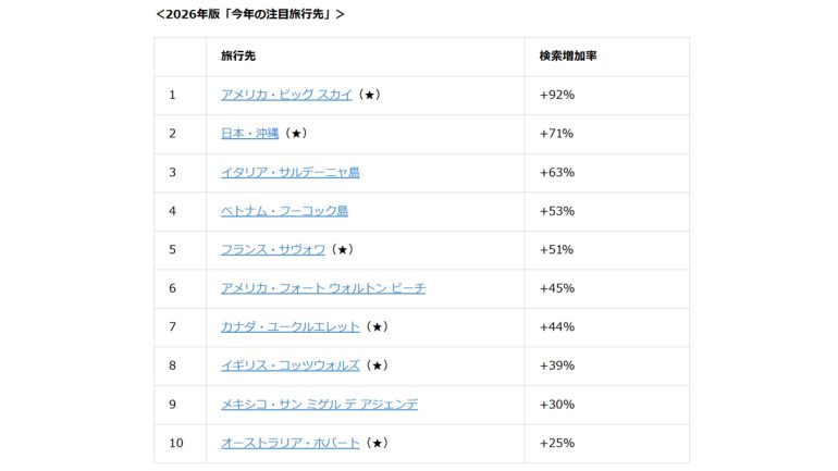 話題になる前に知っておきたい、世界中の旅行者が関心を寄せる2026年版「今年の注目旅行先」