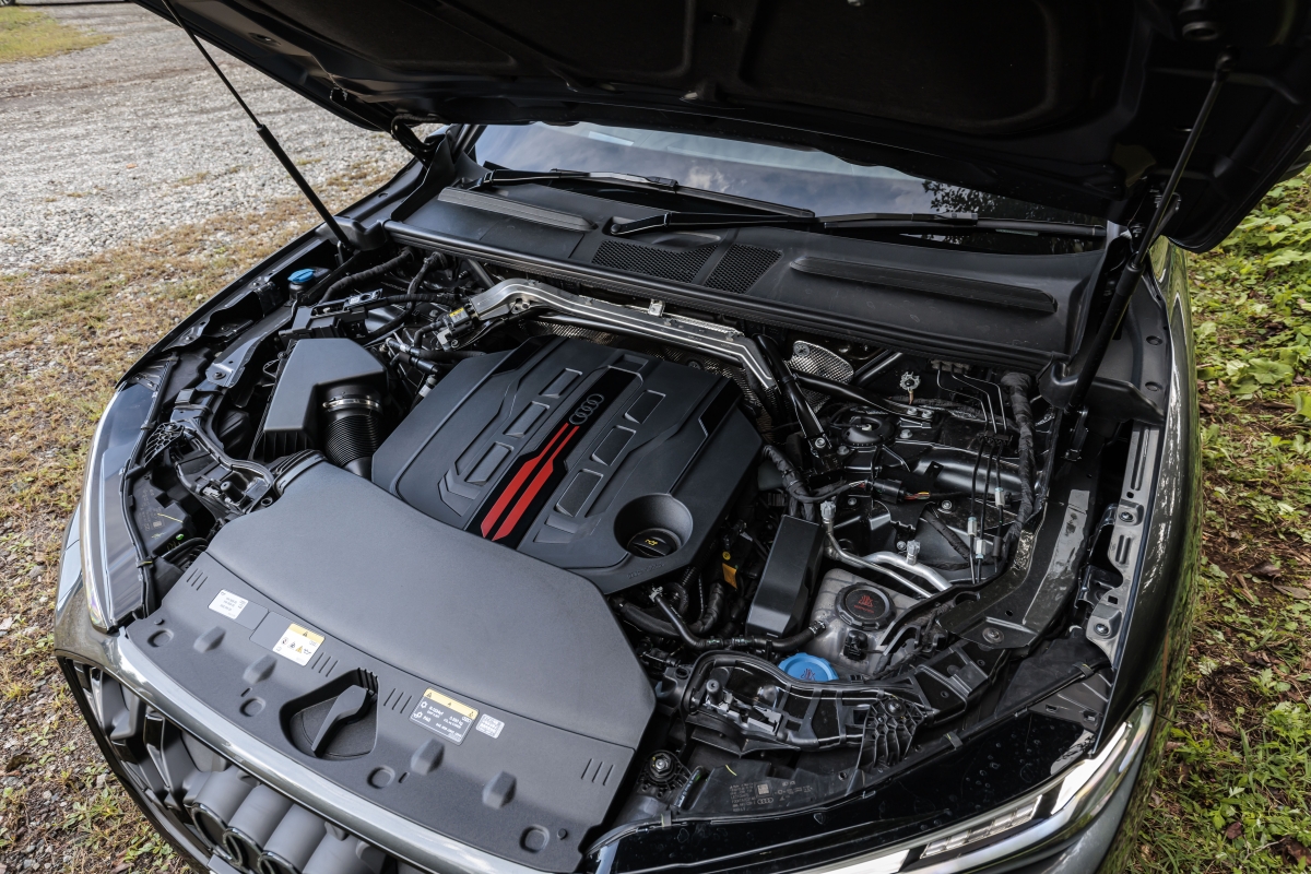 もちろん、367ps、56.1kg-mを発揮する可変タービンジオメトリー(VTG)付きターボチャージャーを装着した3L V6 TFSI エンジンのトルキーで強力な加速力は低速から高速域まで、あらゆる速度域で発揮され、とくに山道でアクセルのON/OFFを繰り返すような走行シーンでアクセルレスポンスの良さとステアリングによる向きの変えやすさ、頼りがいあるブレーキ性能が際立つため、扱いやすさ、走りやすさ、操縦の自在感はもう抜群と言っていい。だから狭い道でも、1900mmの車幅を感じにくいダイナミックな走りが可能になる。