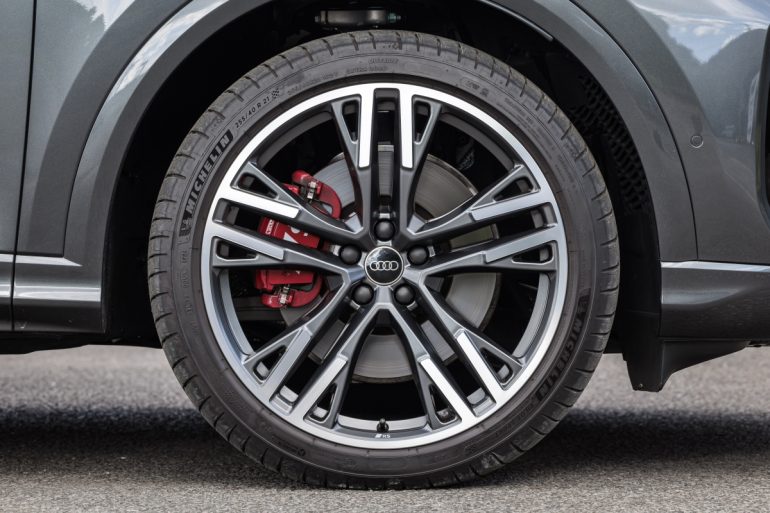 SQ5の足元を支えるのが20インチのグラファイトグレーポリッシュット5 ツインYスポークアルミホイールと255/45R20サイズのタイヤで、そのアピアランスからでもダイナミックな走りと俊敏なハンドリングを予感できる。