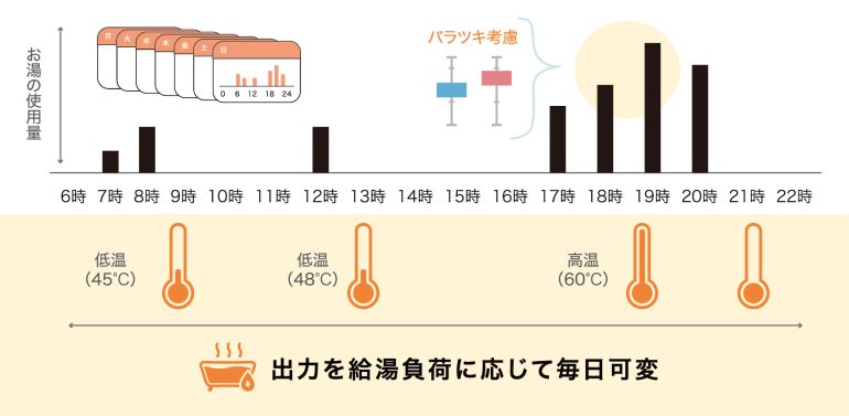 「お客様の使用パターンを学習し、ヒートポンプユニットの出力を毎日可変させながら、最適な貯湯温度を1℃単位で調整します。光熱費とCO2の排出量をしっかり抑えてくれます」(陣野さん)