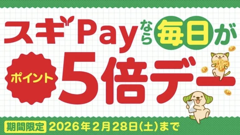 今ならさらに2ポイントがプラスされ、合計5ポイント還元キャンペーンが開催中です。開催期間は2026年2月28日(土)までと長期間です。