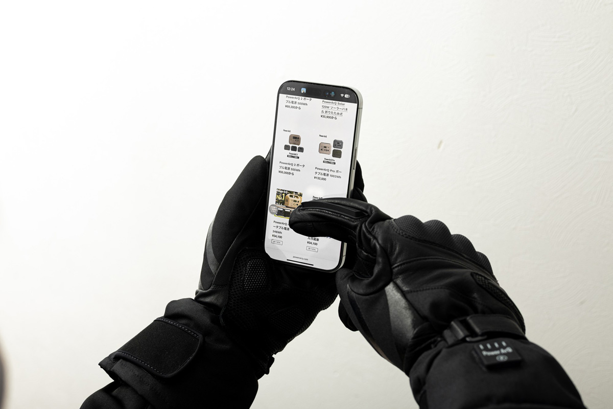 指先は特に冷えやすく、繊細な操作にも影響しやすい部分だ。Voltera Gloveは指先まで強力な電熱ヒーターを内蔵しており、強モードでは約60~65℃まで発熱。厳しい寒さの中でも快適に操作できる。