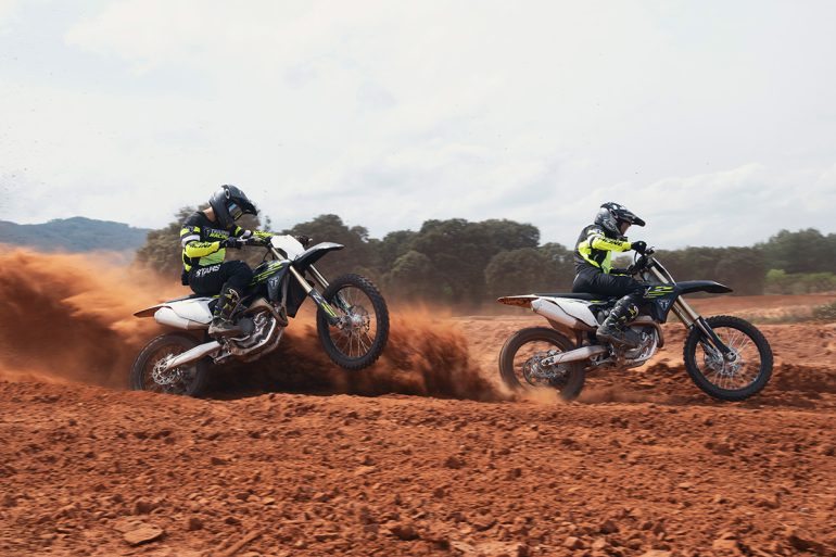 そして燃料・吸気系はDell’Orto製44mmスロットルボディとKeihin製インジェクターを組み合わせ、燃料微粒化を最大化。TF 450-RCで初採用されたエアボックスとサイレンサーを継承し、吸気流量とレスポンスを高めつつ、FIM/AMAの音量規制に適合している。