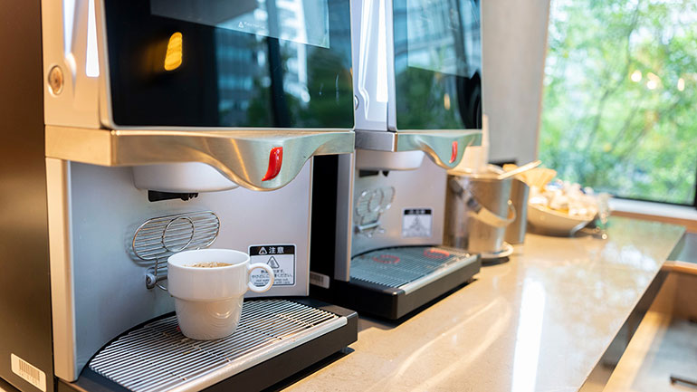 そしてコーヒーの香りで目が覚めたら、コーヒーが飲みたくなるもの。ホリデイ・インエクスプレス大阪シティセンター御堂筋では宿泊者全員が無料で朝食を楽しむことができ、もちろんコーヒーも飲むことができる。