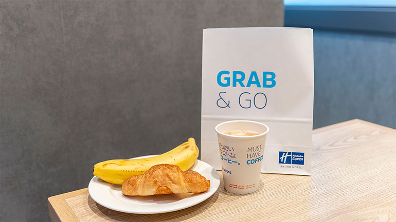 早朝に出発する時は「Grab&Go」を利用することも可能。朝6:30からパン・ホールフルーツ・ドリンクを持ち帰ることができるサービスだ。