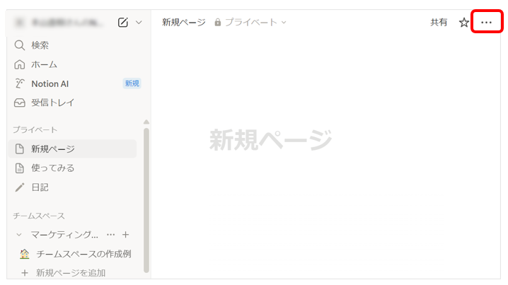 - 対象ページを開き、右上の「共有」ボタンをクリック
