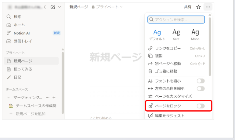 重要な資料やテンプレートは「ページロック」を活用することで編集を防げる。特に複数人で共有する場面では、誤って内容を書き換えられるリスクを大幅に減らせる。