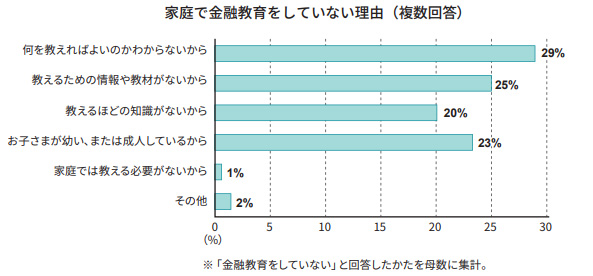 家庭で金融教育をしていない理由は「何を教えればよいのかわからない」が最多