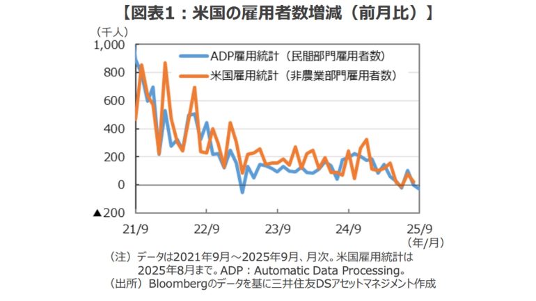 また、FOMC参加者による経済見通しでは、2025年内にあと2回、合計0.5%の利下げが見込まれている。図表1のとおり、雇用者数の伸びが減速傾向にあることを踏まえると、連続利下げの可能性が意識される。