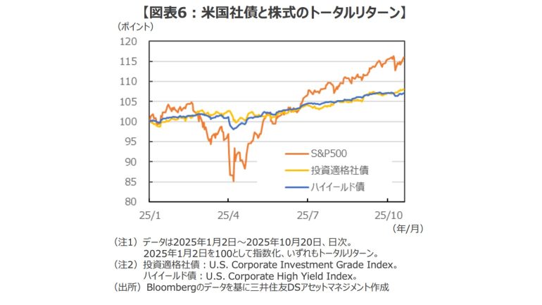 そのなかで米国社債のトータルリターン(価格変動損益+クーポン収入と再投資分)は、比較的安定した推移を示してきたようだ(図表6)。