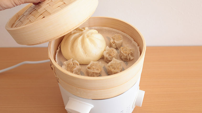伝統的なせいろ&鍋との決定的な違いは、鍋が加熱機器を兼ねている点だ。ガスコンロではなく家庭用電源を使うため、火が強くてせいろが焦げるといったトラブルがないメリットがある。