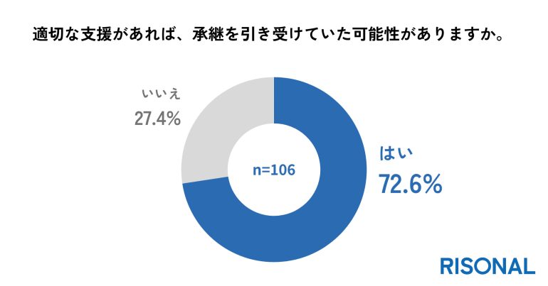 72.6%が、適切な支援があれば承継を引き受けていた可能性あり