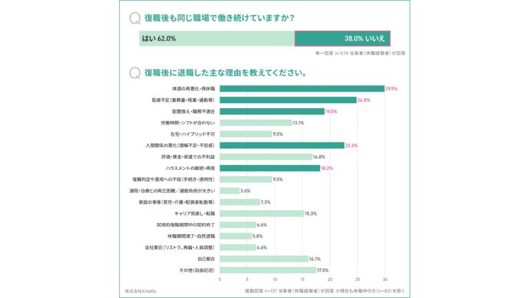 復職後の定着は約6割。退職理由の約3割は体調の再悪化・再休職