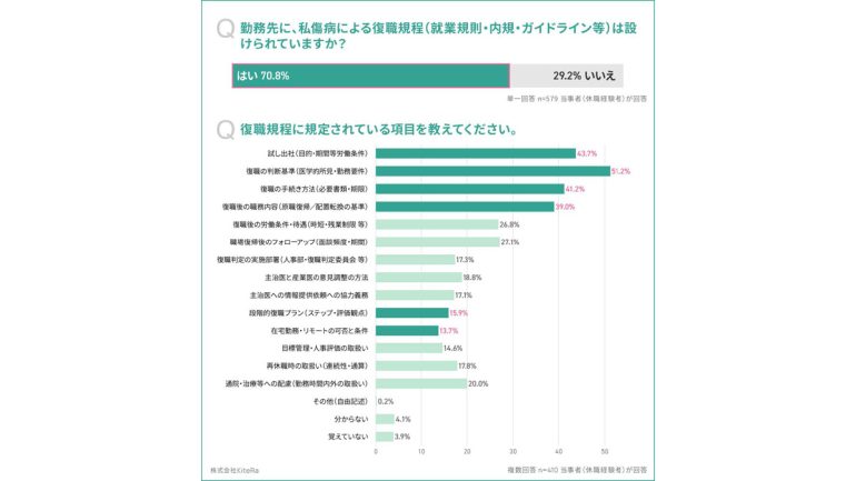 復職規程は7割が整備。「復職の判断基準」は半数以上
