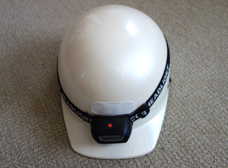 さて、やむなく避難所に向かうとして、日ごろから準備した、両手が空くリュックを背負い、避難所を目指すわけだが、それが日中とは限らない。夜、停電で真っ暗になった道を、瓦礫を避けながら歩かざるを得ない状況もありうる。懐中電灯を手に持つのもいいが、それではせっかくリュックを背負って両手を空ける安全面のメリットが損なわれてしまう。そこで役立つのがヘッドライトだ。これも100均で手に入るアイテムで、ヘルメットや帽子に装着でき(首にかけても使える)、明るいLEDライトが前方足元を照らしてくれるから安全・安心だ。
